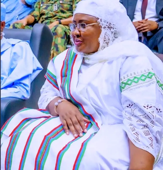 Accompanied by a photograph of Aisha Buhari, the tweet simply translates as “Mama has eaten poor people’s money and is now full.”